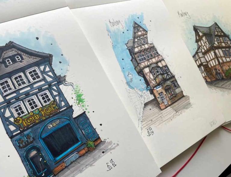 Schreib mir gern, wenn du Fragen hast, ein Gebäude gezeichnet oder ein bereits gezeichnetes Gebäude als Druck kaufen möchtest.